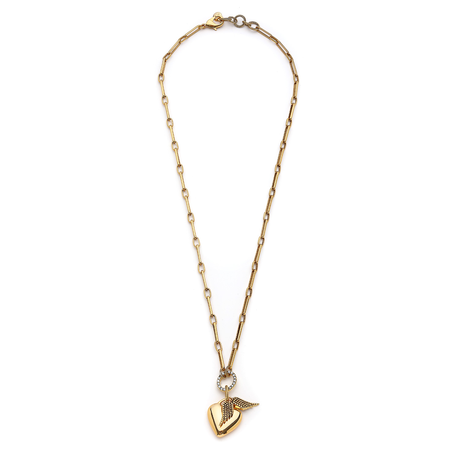 Angelo Kanat & Kalp Charm Altın Kaplama Zincir Kolye