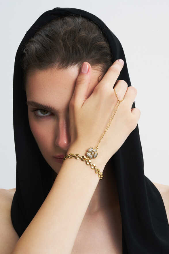 Evelyn Altın Kaplama Yonca Zirkon Charm Zincir Şahmeran