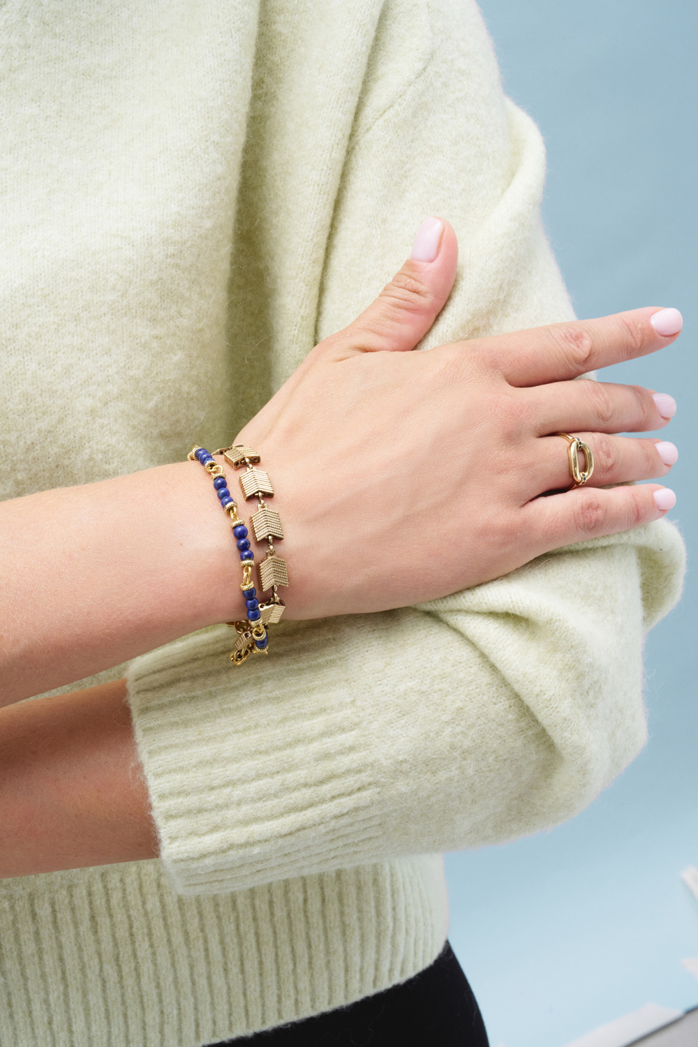 Gücün ve zarafetin birleşimini simgeler. Altın halkalar kararlılığı ve birliği, lacivert kristaller ise gece göğünün dinginliğini ve sezgiyi temsil eder.
