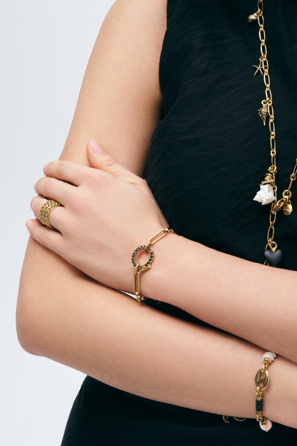 Altın Kaplama Pirinç, Deniz Kabuğu, Cam Boncuk